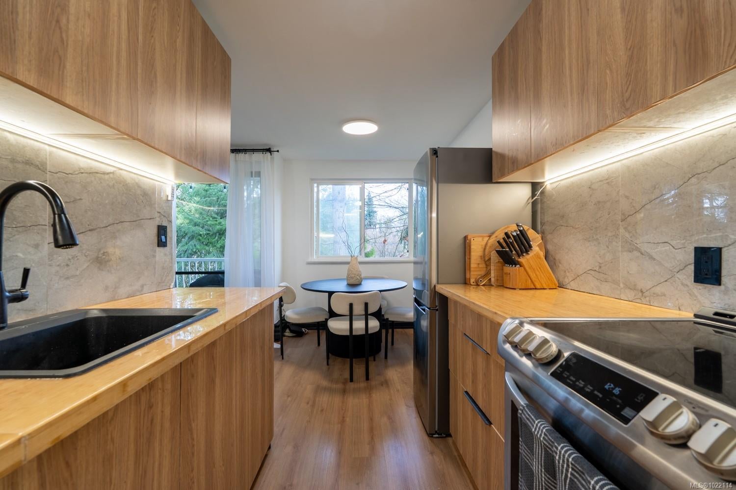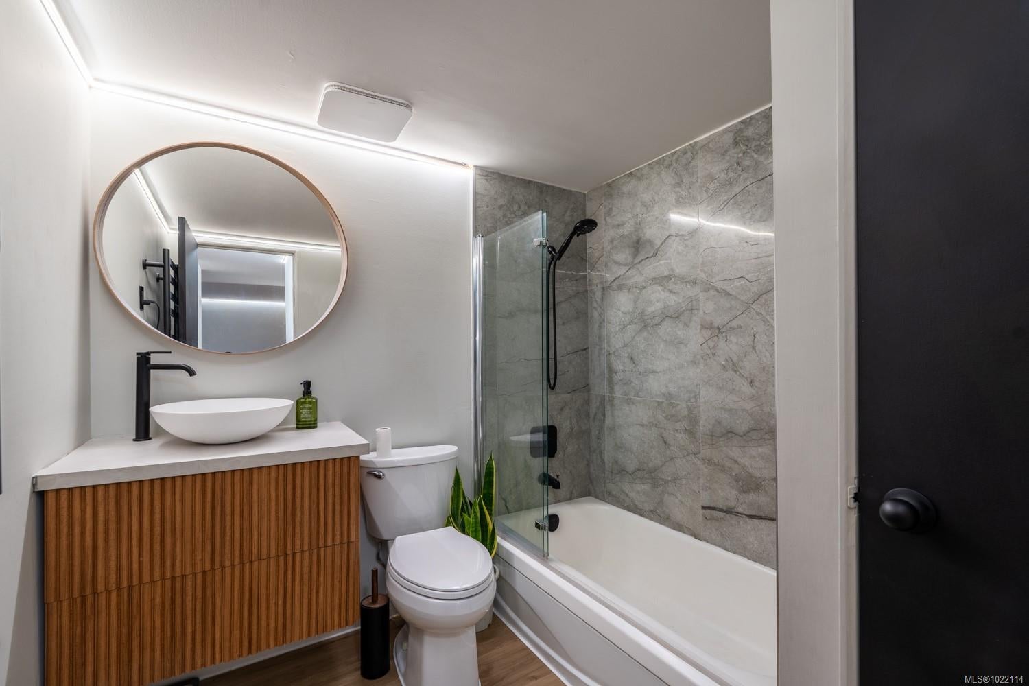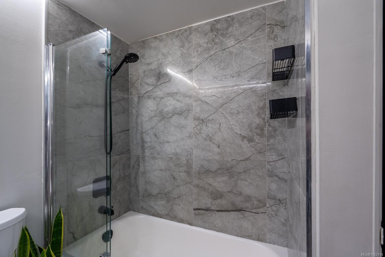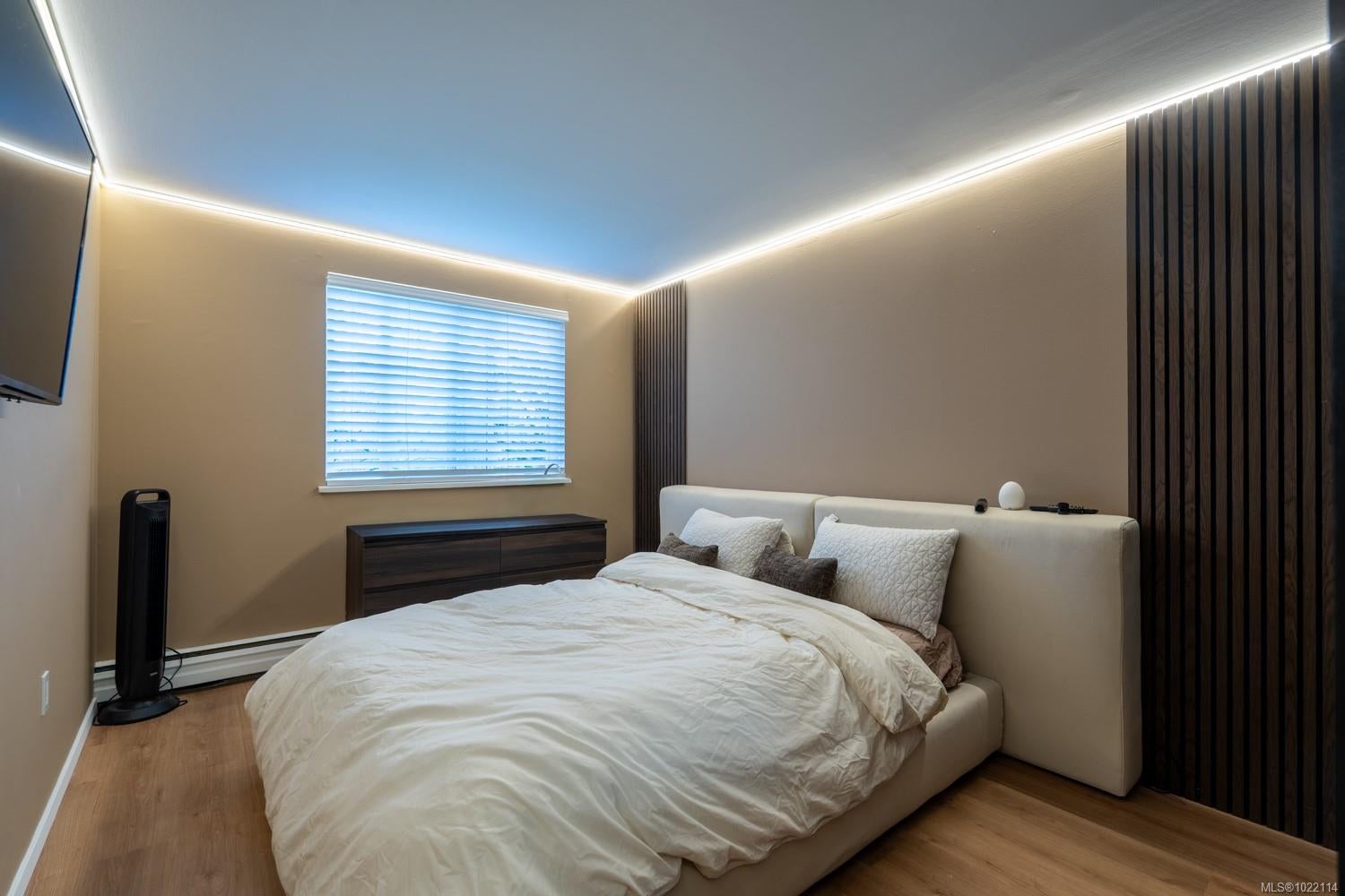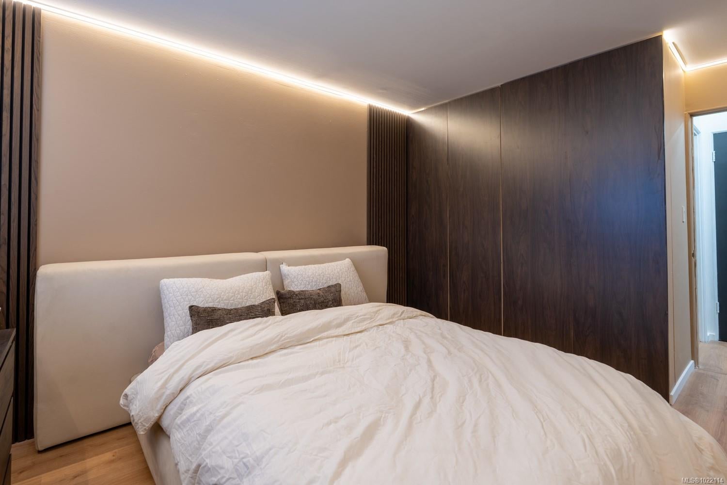 Move right into this stunning, completely renovated one-bedroom condo in central Nanaimo! Perfect for any lifestyle or an investment opportunity. Enjoy custom cabinetry and modern appliances in the bright kitchen, plenty of storage throughout, plus a versatile in-unit storage room/den – ideal for a home office, pantry, or extra organization. The showcase bathroom features premium fixtures, elegant tiling, and spa-like comfort. To complete the vibe, there is custom lighting throughout the unit bringing a warm, modern ambiance. You will live across the street from Bowen Park, walking distance to Buttertubs Marsh wildlife sanctuary and VIU. Close to shopping, transit, and downtown amenities. The strata is pet-friendly (See Bylaws: up to 2 cats or one dog with a 22kg limit). Heat and hot water are included in the Strata fees and keep the hydro bills really low for these units. Don't miss this move-in-ready gem – contact for a viewing today!